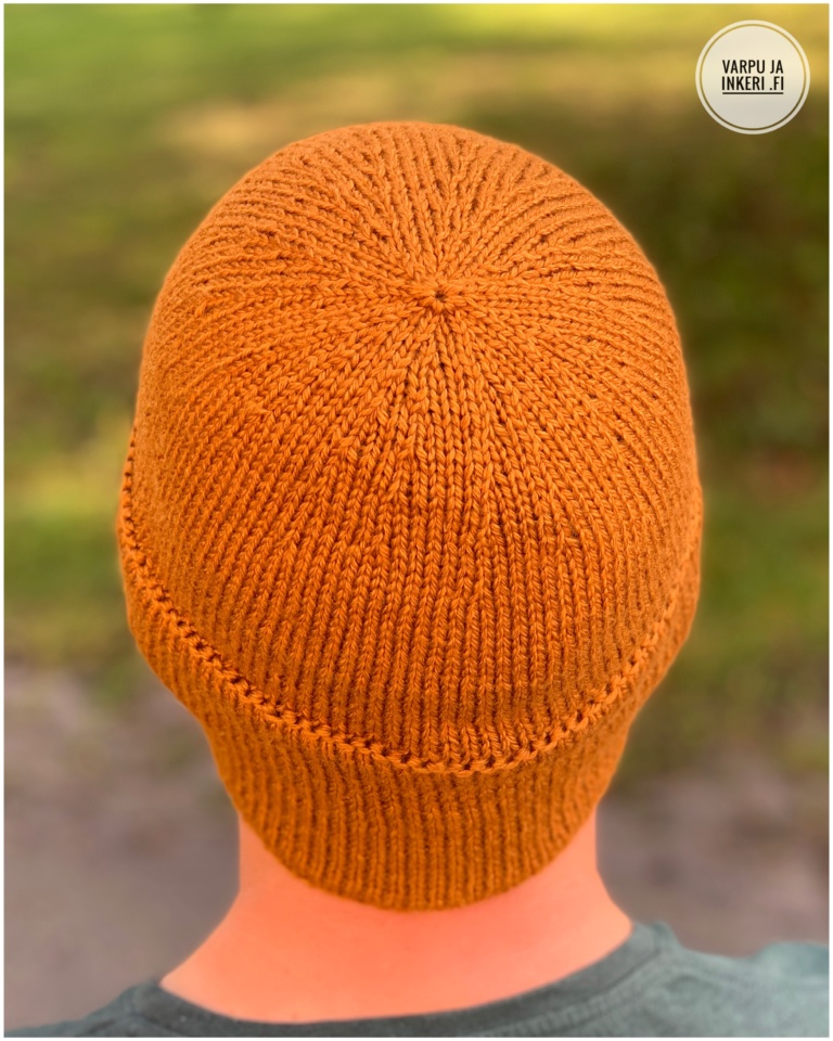Luo väliaikaisella aloituksella 104 silmukkaa. Hyvä ohje löytyy esim. Ullaneule.net -sivustolta (virkkausaloitus). Käytä aloitukseen selkeästi eri väristä lankaa kuin se, jolla aiot jatkaa. Neulo 3,75 numeron pyöröpuikolla 1 n, 1 o neuletta. Kun neuleen korkeus on noin 9 cm, neulo yksi nurja kerros. Tässä on pipon reunan käännekohta. Neulo sen jälkeen sileää oikeaa, kunnes nurjan kerroksen kummallakin puolella on saman verran neulosta.